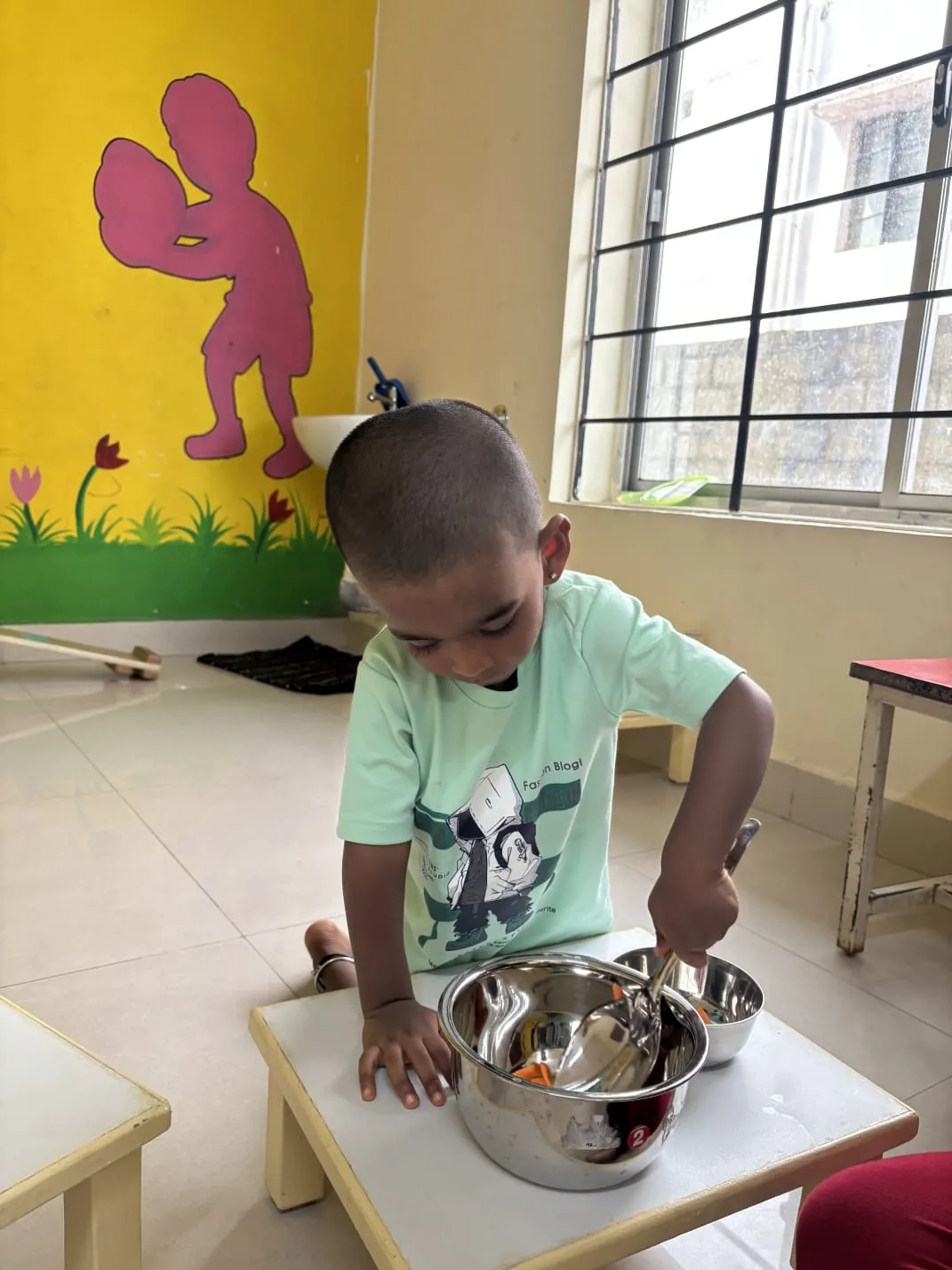 Children practicing essential practical life skills through carefully prepared activities that build independence and self-care abilities.